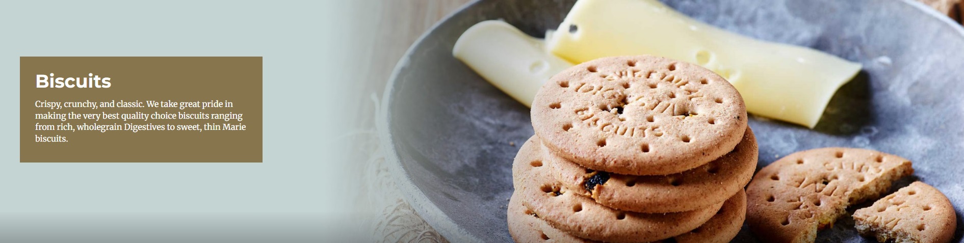 Wholegrain Digestives with a solid crunch. Perfect for a cheese buffet, the lunch box, or as a snack. The Digestive biscuit was invented by two Scottish doctors back in 1839 and has enjoyed great popularity ever since. At Bisca, we use the same classic recipe every time.