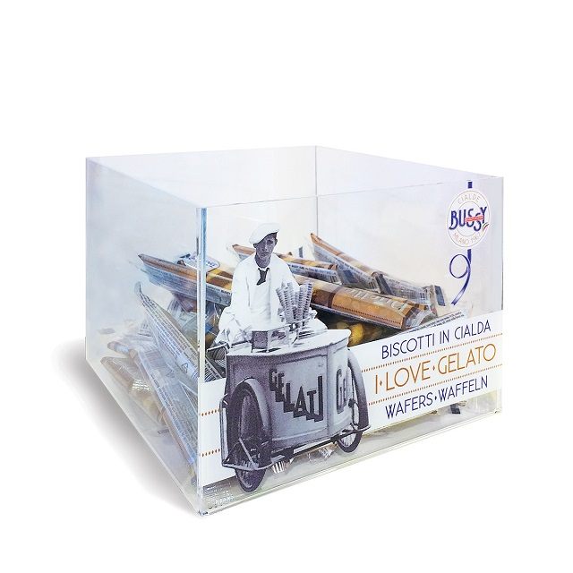 Plexiglas counter display, to be filled with the mini packs I Love Gelato