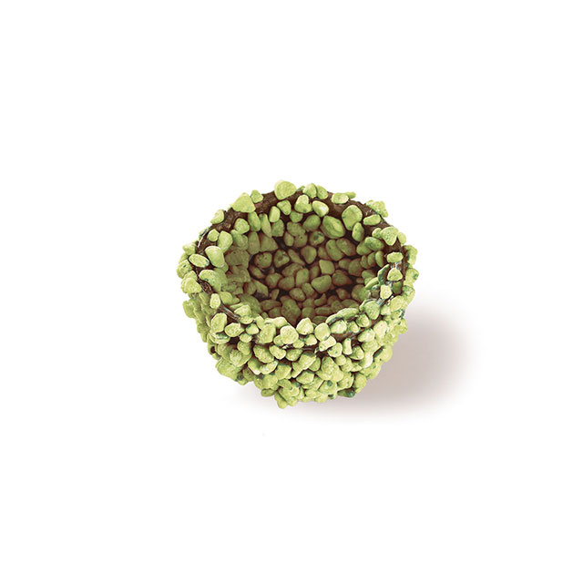 Wafer cups, cocoa coated, with pistachio flavoured puffed rice sprinkle
