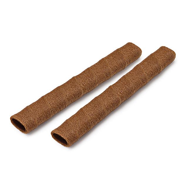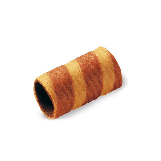 Cocoa-striped rolled wafer, coated inside with cocoa coating