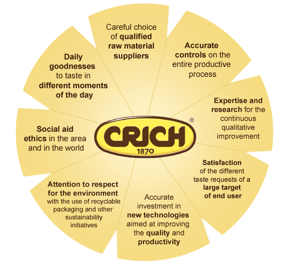 Crich  has always been committed to providing high quality products trying to satisfy  the most of the expectations and tastes of its customers and consumers, offering pleasant moments of goodness, served in various daily break.