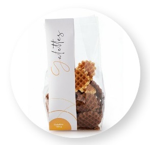 The gastronomic biscuits by Didess are a bit smaller and more elegant, perfect for a luxury presentation. Serve the gastronomic biscuits after dinner together with Belgian Pralines and coffee or tea. Choose from extra fine butter biscuits or Délice biscuits with Belgian chocolate or crispy caramel filling.
