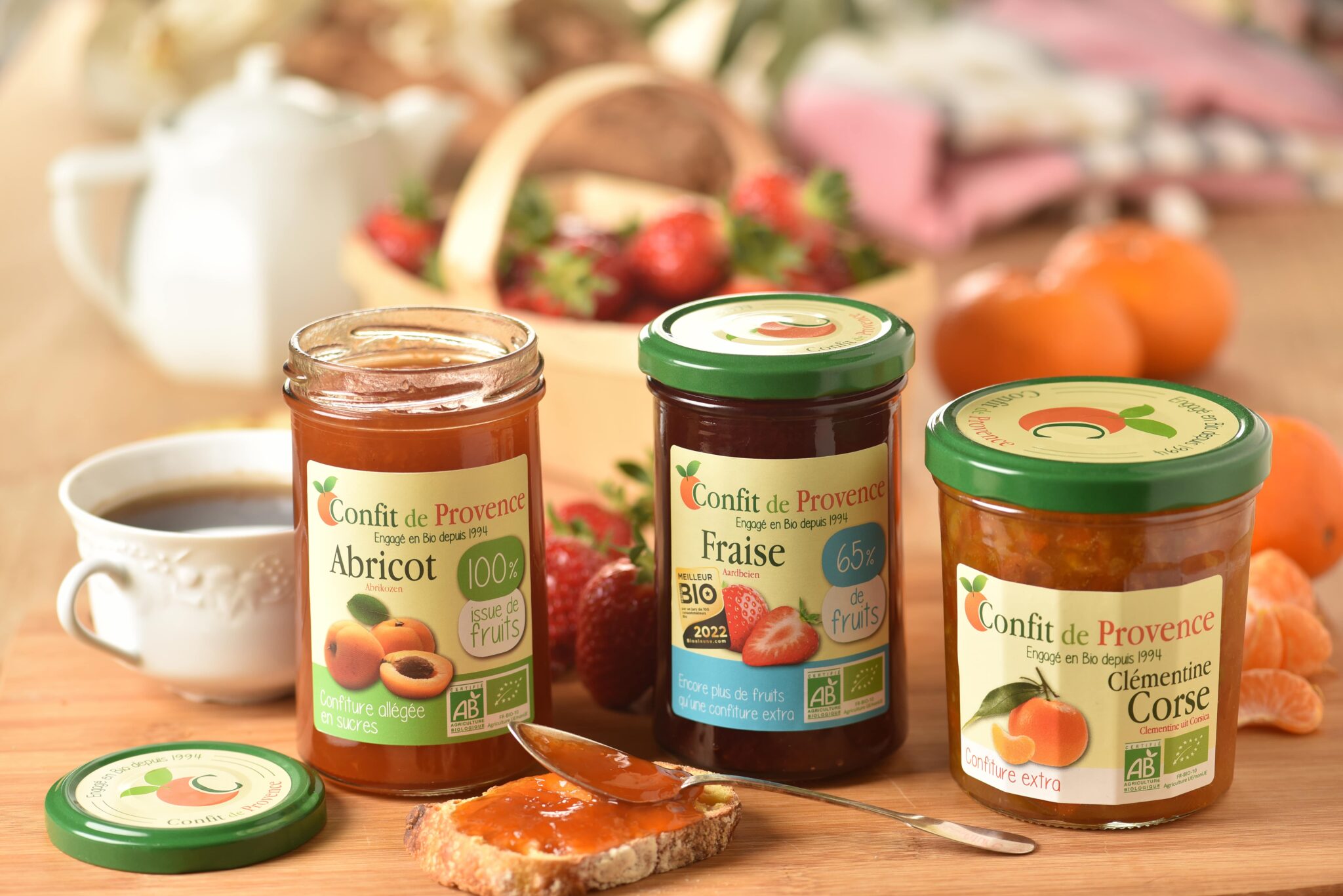 Confit de Provence was created over 40 years ago near Aix-en-Provence. Dominique Lepoutre, the company’s founder, was determined to promote our region’s fine products. First honey and almonds, then, of course, local fruits, before further expanding the range. Passionate about healthy eating and nutrition, he introduced the very first range of low sugar jams in 1989, with a 100% fruit-based healthy recipe. Our “Confiturelle” were born! In this virtuous quest, he soon turned to organic farming and, in 1994, obtained the first organic certification awarded to a jam maker. These two major events established Confit de Provence as a forerunner in its field.