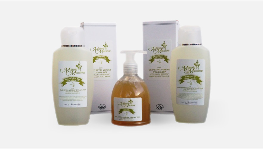 All the elements used exclusively to produce Masseria Maccarone Olive oil cosmetics have no harmful substances such as petrolatum, parabens, synthetic antioxidants (BHT and BHA), aluminum salts, aggressive surfactants (SLS and SLES) and irritating chemical preservatives (imidazolyndinyl). Every ingredient is derived from natural Masseria Maccarone produce.