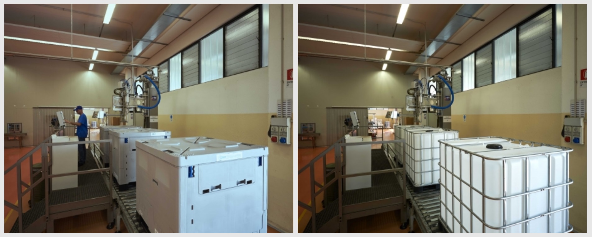 Plant equipped for the filling of 900 kg / 600 kg tanks, 900 kg Pallecon, 190 kg tanks, 21000 kg Flexitank.