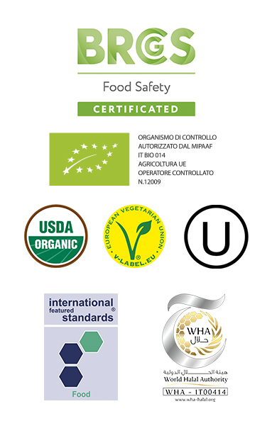 Agromonte products are B.R.C. certified and I.F.S., moreover, the company implements a rigorous sanitary self-control plan, drawn up by our specialized technicians, and follows the HACCP system, as required by current EU regulations. In addition to products obtained from conventional agriculture, the company transforms products from organic farming under the REG. CE 837/07 E s.m.i