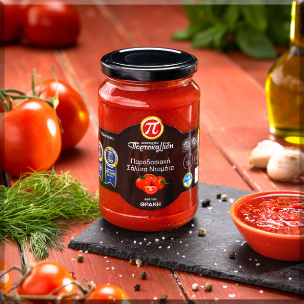 The 680 gram tomato sauce from Portokallides is a product that combines traditional quality with modern production technology. This unique sauce resulted from the evolution of the traditional method of making sauce, taking advantage of state-of-the-art mechanical equipment.
