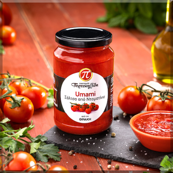 The UMAMI tomato sauce 350 grams from cherry tomatoes of the highest quality, produced and processed by the Portokallides household, is a special proposal for those who are looking for a sauce of a particularly superior quality that can express the creative talent from the housewife to the professionals who intend to create proposals with distinct flavors