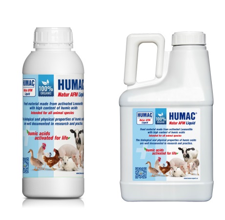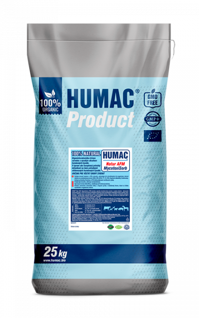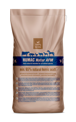 HUMAC ® Natur AFM MycotoxiSorb is a 100% natural feed material made from activated Leonardite with high content of humic acids (+65%) intended for the detoxification of compound feeds from mycotoxins, bacterial toxins, heavy metals, other organic toxins such as dioxins, PCBs and others that commonly enter the organism through feed. HUMAC ® Natur AFM MycotoxiSorb is non-digestible therefore toxins bound to its structure are removed from the body via feces. The active substance formula, humic acids, derives from a special mechanical activation of Leonardite – a natural substance of plant origin with high biological activity. Humic acids function as an organic detoxification agent with high affinity to heavy metals and other toxins. The product is mechanically processed via our own dual activation procedure for the purpose of improving its efficacy.