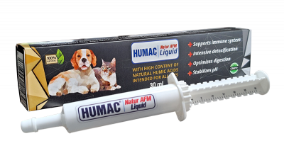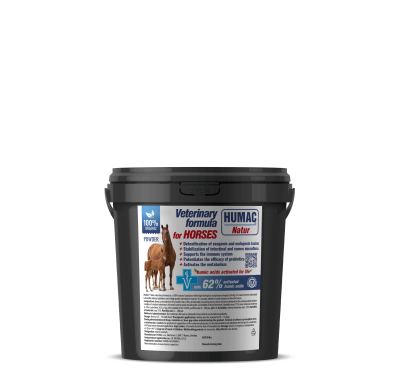 HUMAC® Natur veterinary formula is a 100% natural substance, a brown-black powder with high biological and pharmacological effectiveness. It is produced by activating the mineraloid Leonardite without additives, for horses with high purity. It is added in specified amounts to compound feeds of foals and horses. The formula does not leave any residues within the body, there is no withholding period.