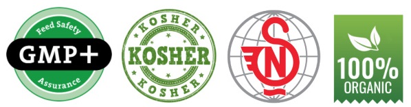 All our dry products for animals are GMP+ certified. All our products are also certified for use in organic animal husbandry and crop production. Additonally, since 2020, all our products are Kosher certified.