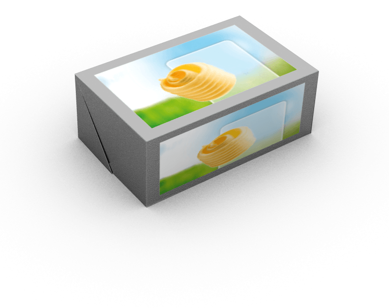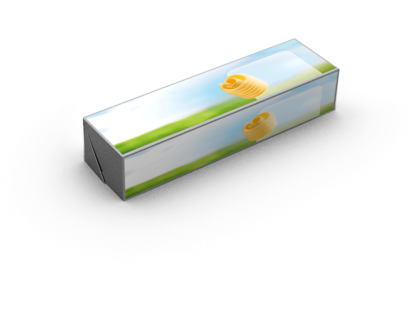 The finger is a packaged in a 100g format in aluminium complex. It combines the advantages of a competitively-priced packaging with a purchase commitment that is more accessible to consumers. Its weight of 100g is also very popular with aromatised butters.