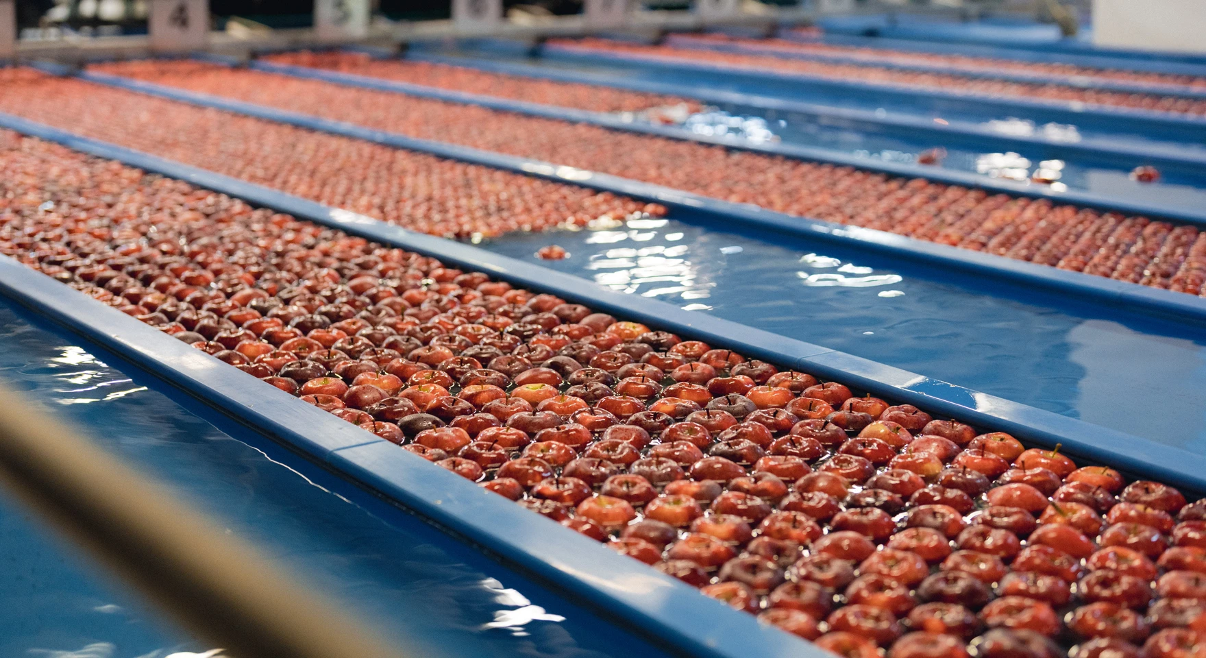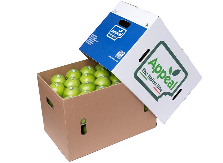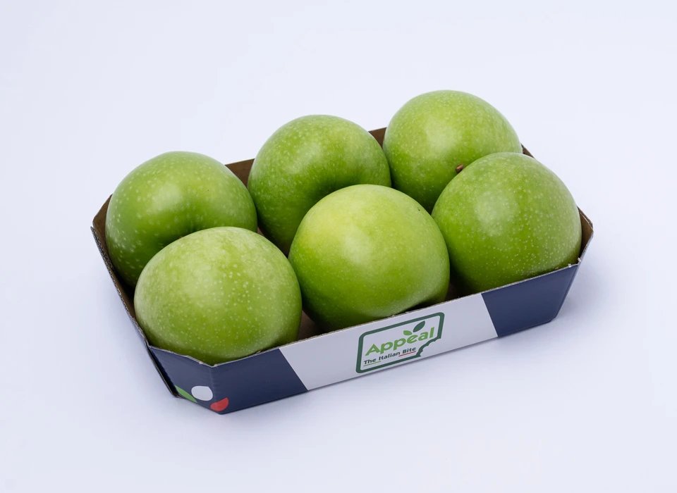 Through seven versatile and precise processing lines, apples of different types are packed in the desired formats.