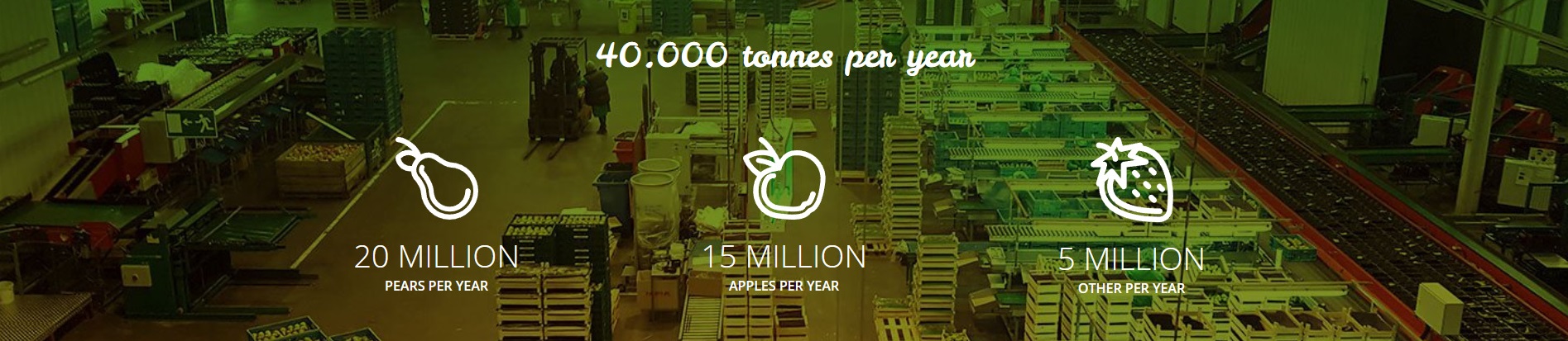The cultivation company has been part of New Green, a dynamic cooperative of local fruit growers and producers who specialise in ecological fruit cultivation, since 2009. Together we manage a surface area of 1000 hectares. Every year the members of this cooperative produce some 200 million pieces of fruit which are distributed over the whole world via the fast BEL’EXPORT network.