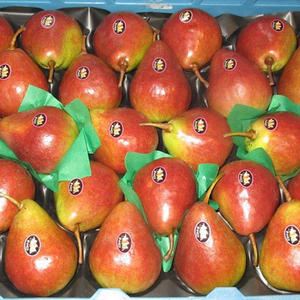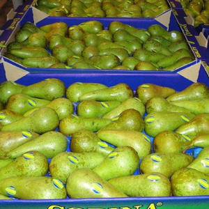 The Corina pear is the same pear as the Conference, but it ripens three weeks earlier and so is available as early as the end of July, beginning of August. It’s sold exclusively for export by Bel’Export.