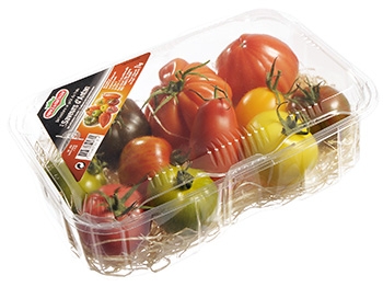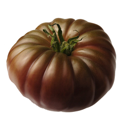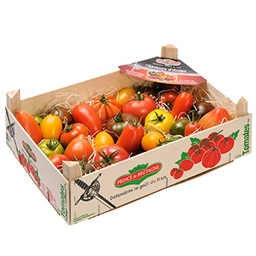 A unique assortment of more than six tomato varieties offering different shapes, colours and tastes: Coeur de Boeuf, Crimean Black, San Marzano, Cornue des Andes, Green Zebra, pink, orange, yellow and striped.