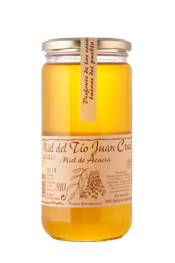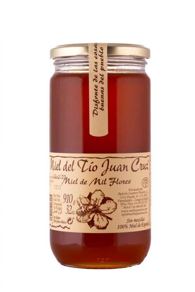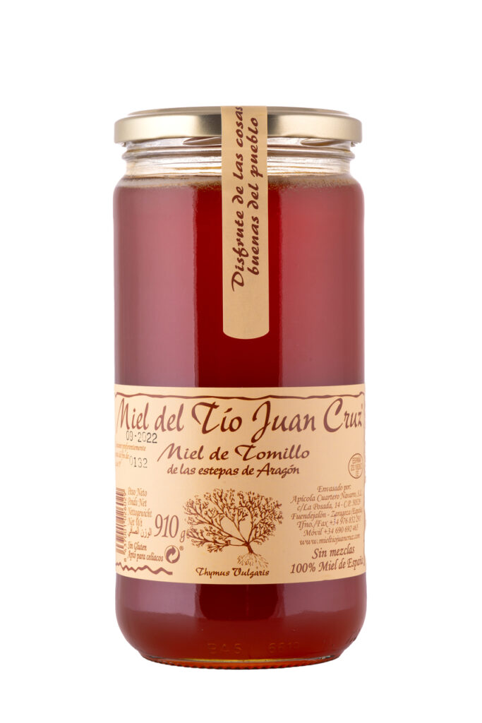 Here you can find all products from “Miel del Tio Juan Cruz” which come in our large jar (910gr) medium (450gr) and small (250gr). All our labels come in 5 languages (Spanish, English, French, German, and Arabic- Classic).