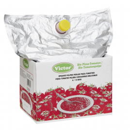 Organic Pizza tomatoes in bag-in-box – pulped and pealed